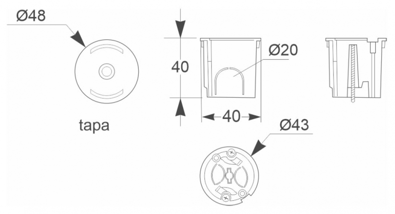 | Méret | méret: 40mm tető átmérő: 48mm kikönnyítés: 2x O20mm |